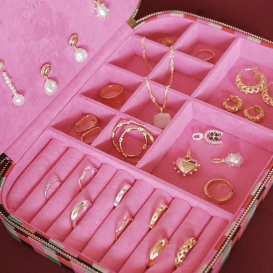 英国のファッションブランド「SHRIMPS」とのコラボコレクションから登場したラージサイズのジュエリーケース。クラシカルな雰囲気のプリントデザインは置くだけでインテリアのアクセントに。リングやピアス、ネックレスなどを美しく整理できる仕切り付きで、ジュエリー選びがさらに楽しくなりそう。