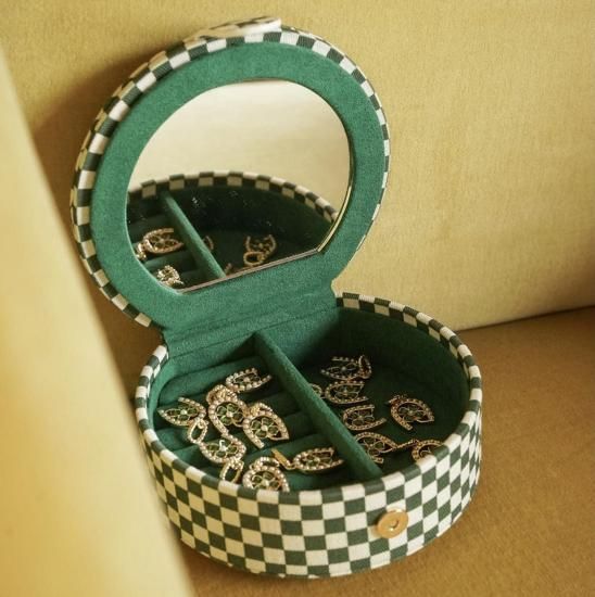 英国のファッションブランド「SHRIMPS」とのコラボコレクションから登場したコンパクトなジュエリーケース。クラシカルな雰囲気のプリントデザインが、置くだけでインテリアのアクセントに。リングやピアス、ネックレスなどを整理しやすい仕切り付きで、お気に入りのジュエリーをすっきり収納可能。